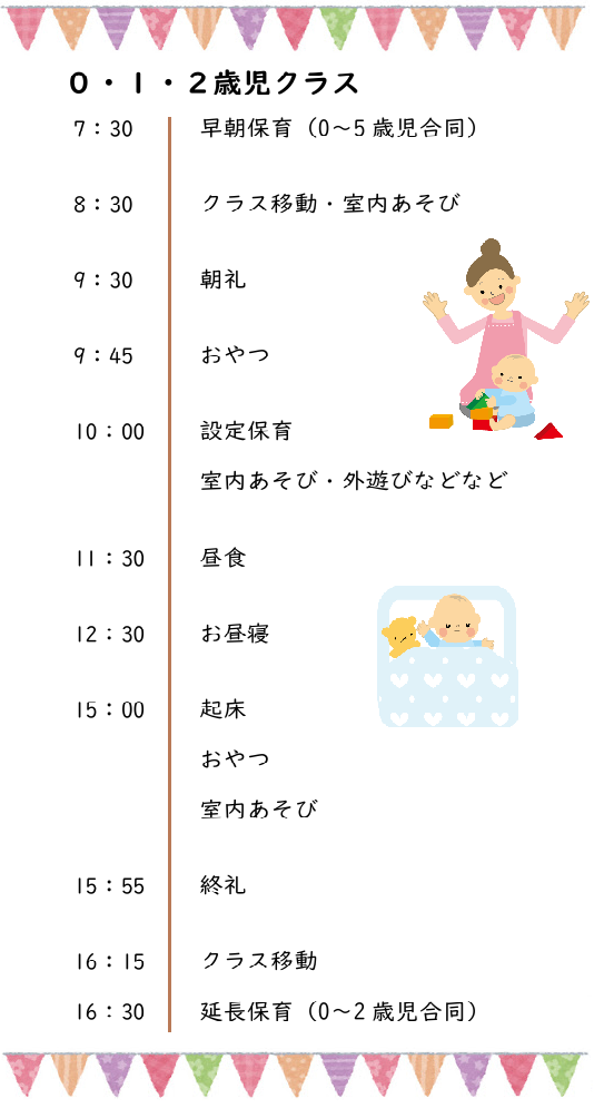 大切な乳幼児期をお預かりするにあたって家庭にいるような温かさと、遊びを取り入れながらも学ぶ楽しさを経験できるような保育の提供を行っています。